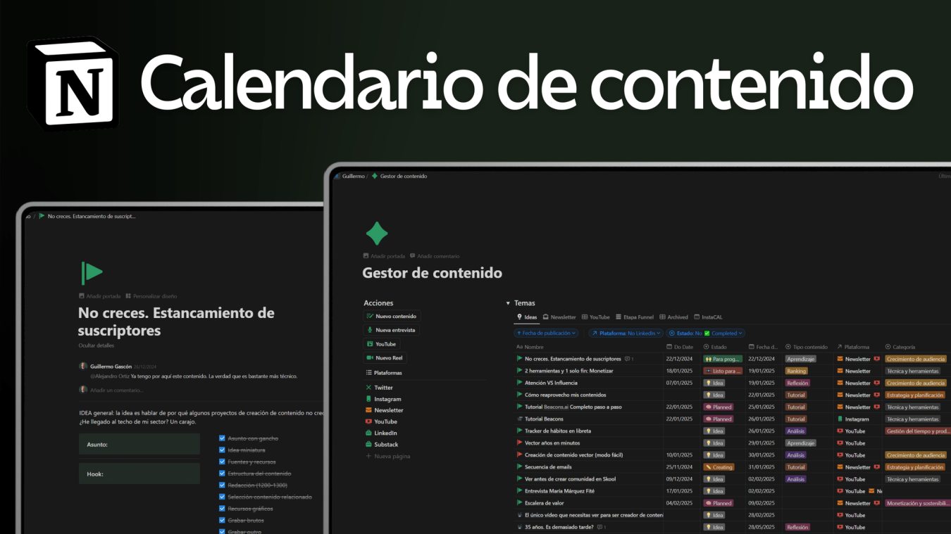 Déjame tu correo y te envío mi plantilla para organizar tu calendario editorial.